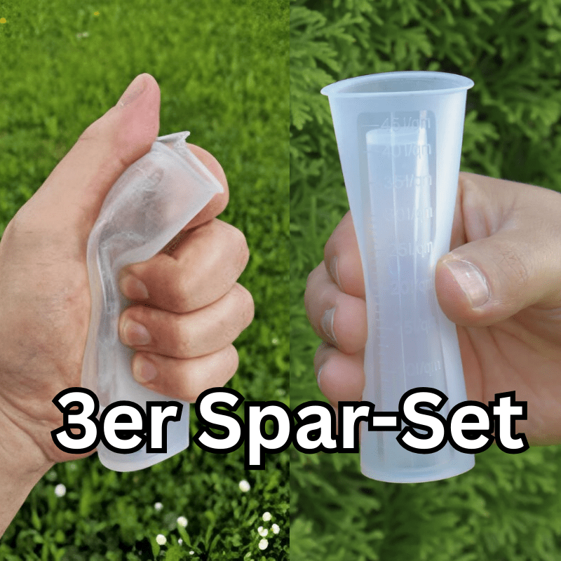 3er Vorteilspaket: Regenmesser aus flexiblem Silikon. 3x frostsicher, bruchsicher, recycelbar. Perfekt für mehrere Messpunkte (Garten, Balkon & Landwirtschaft).