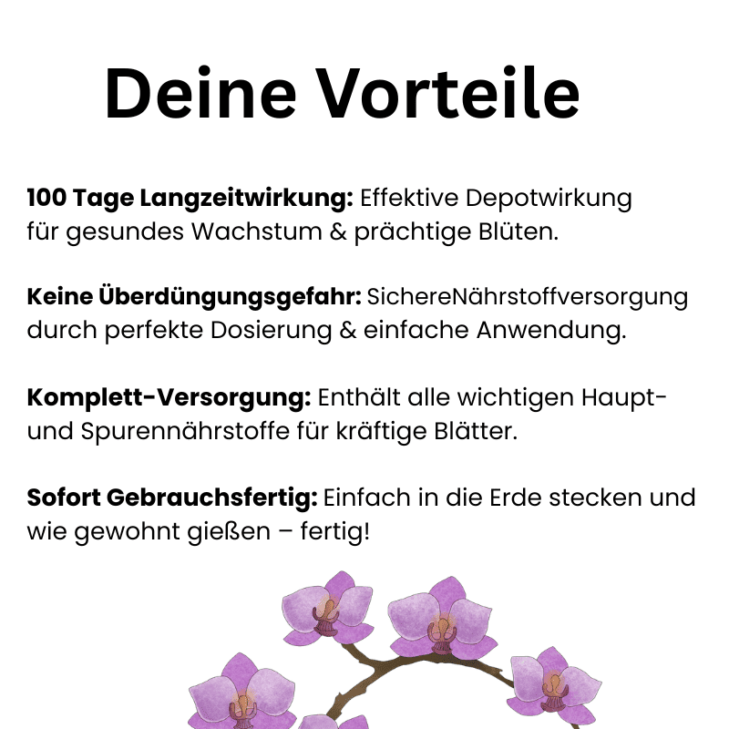 Nicht zum Verzehr geeignet: Das Produkt ist ausschließlich für die Anwendung bei Zierpflanzen (Orchideen) bestimmt und darf nicht in die Hände von Kindern gelangen.