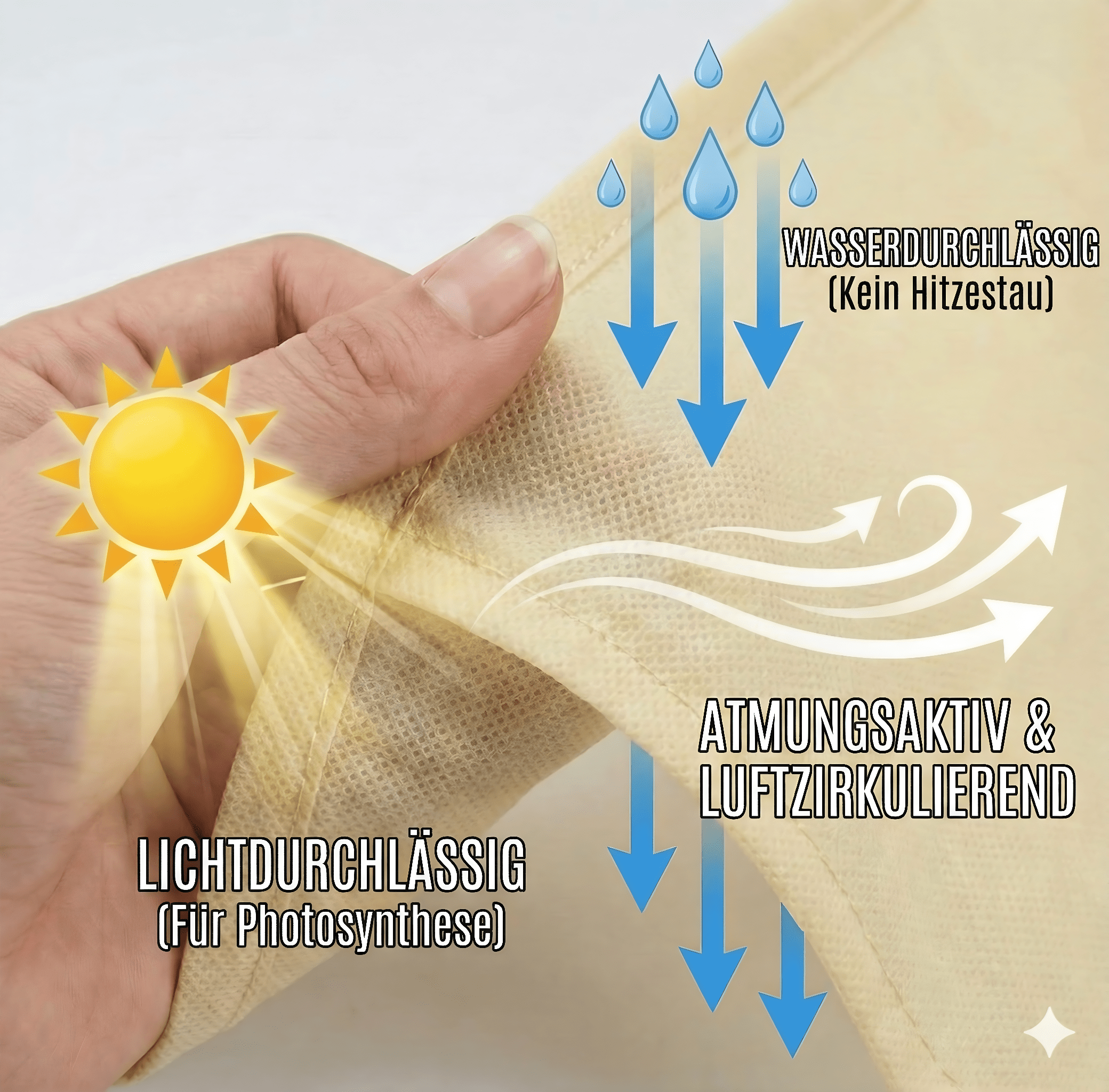 Gefertigt aus hochwertigem, atmungsaktivem PP-Vlies mit 60 g/m², bieten die Hauben einen stabilen Winterschutz, lassen aber weiterhin Licht, Luft und Wasser durch. Ideal für Balkon, Terrasse, Garten und Hochbeet.