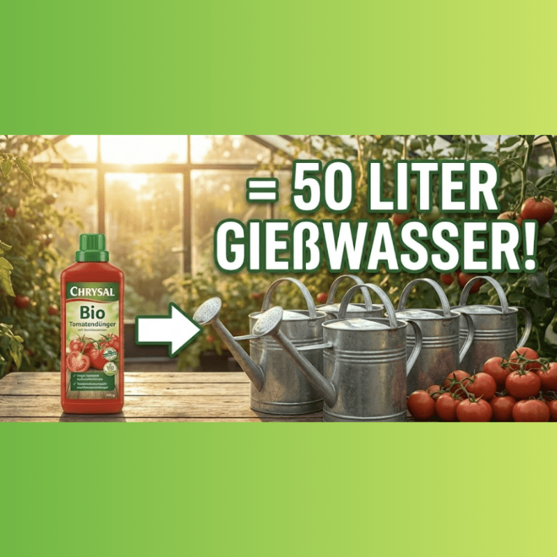 🔹 Chrysal Bio Flüssigdünger Tomaten 500 ml – Sobald die ersten Früchte ansetzen, brauchen deine Tomaten einen Extra-Schub. Der Flüssigdünger kommt einmal pro Woche ins Gießwasser und liefert sofort verfügbare Nährstoffe – genau dann, wenn die Pflanze durch die Fruchtlast am meisten verbraucht. Der Unterschied zwischen “ein paar Tomaten” und “Ernte ohne Ende” entscheidet sich genau hier.