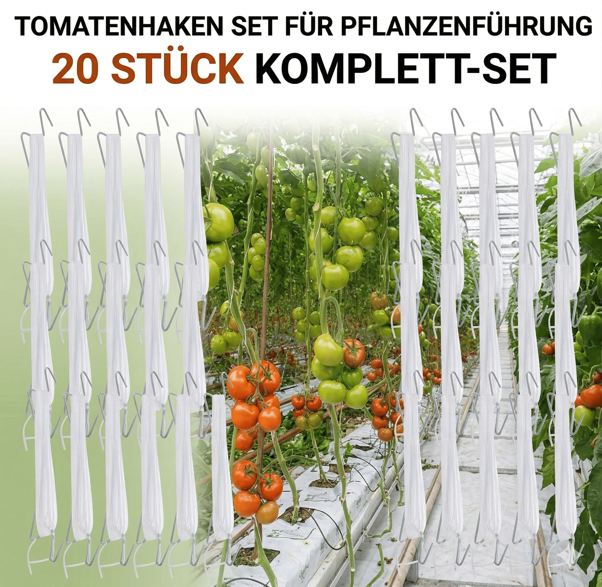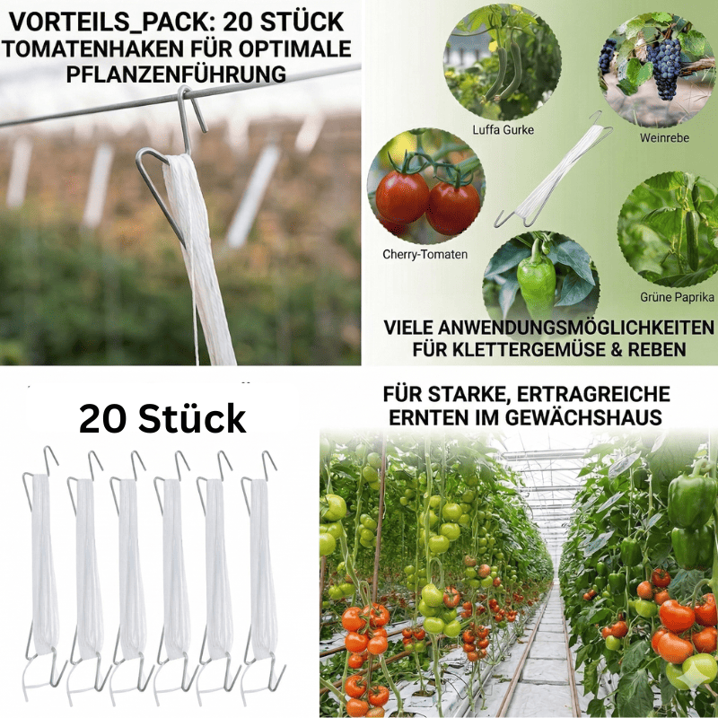 Tomatenhaken 20er-Set – Profi-Rankhilfe für Tomaten & Gurken im Gewächshaus