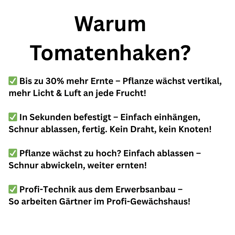 Optimieren Sie Ihr Gewächshaus mit der Technik aus dem Erwerbsgartenbau. Dieses 20er-Set Tomatenhaken mit Wickelschnur ist die effiziente Alternative zum mühsamen Anbinden. Profitieren Sie von einer sauberen Pflanzenführung, besserer Belüftung und deutlich höheren Erträgen auf kleinem Raum.